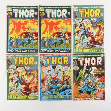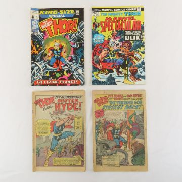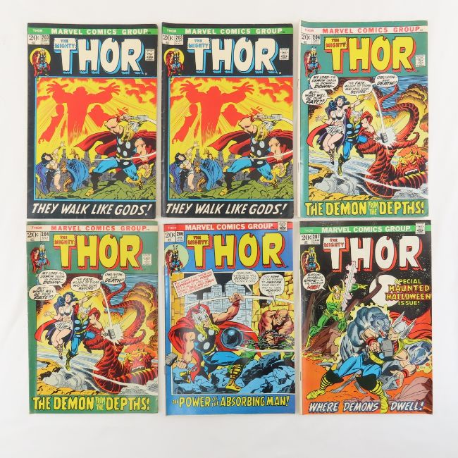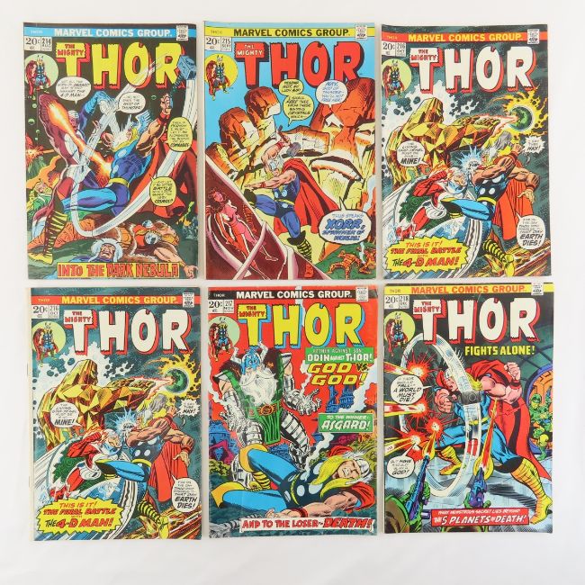 52 The Mighty Thor Comic Books- Bronze Age - 181, 186, 192, 194-195, 196 (2), 197-198, 201 (2), 202, 203-204 (2 each), 206-215, 216 (2), 217-219, 220 (2), 225, 227, 229, 231-232, 235, 245-250. Special Marvel Edition Thor 1, 3, 4, King-Size 4, MarvelSpectacular Mighty Thor 8, no covers 99 & 106, rest have minimal wear, LOT SIZE: 12x8x4", 5.7 lbsPhotos are part of description, please ask questions and read terms & conditions before bidding.