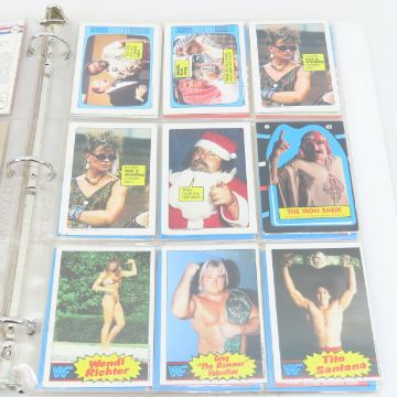 1200+ Mixed Sports Cards 1970-2000's & More - Binder with wrestling, golf, & other sports cards, Binder of 1990's assorted Hockey Cards, approx 1200 loose mixed cards in 2 boxes, and vintage MN North Stars napkins, assorted pin backs LOT SIZE: 14x13x6", 12 lbsPhotos are part of description, please ask questions and read terms & conditions before bidding.