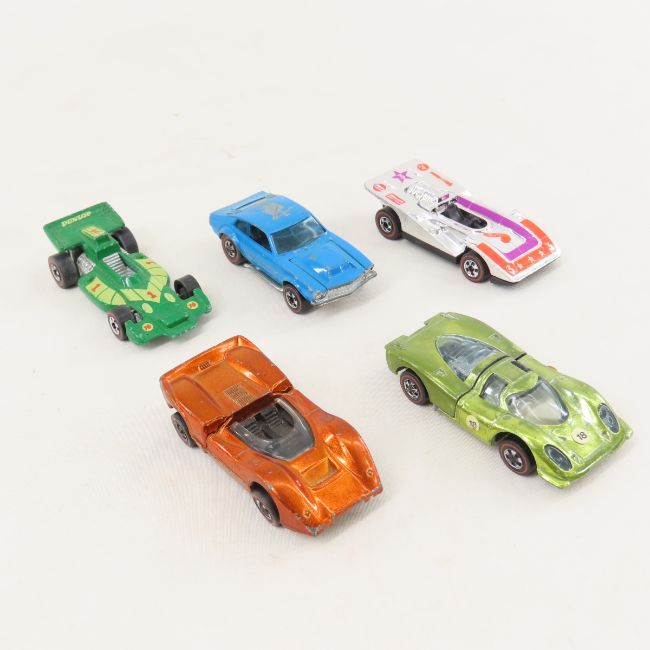 5 Hot Wheels Redlines McLaren M6A, Porsche 917 - Street Snorter, El Rey Special, & Super Chrome Steam Roller Orange & Plum Lot Size 4x4x4" 1 LBPhotos are part of description, please ask questions and read terms & conditions before bidding.