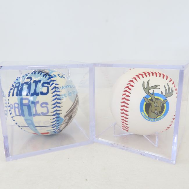 23 Non Major League Baseball Team Fotoballs - and 1 Paris, France souvenir ball, in acrylic cases. LOT SIZE: 14x10x7", 14 lbsPhotos are part of description, please ask questions and read terms & conditions before bidding.