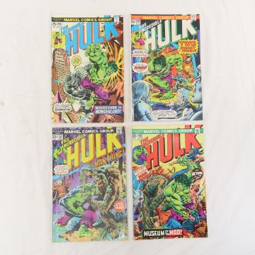 32 The Incredible Hulk Comics- Bronze Age - 133-134, 137, 141-143, 148-149, 153-154, 156-157, 159-160, 163-164, 174, 177-178, 183, 186-188, 194-202. 142 & 143 have tears on spine, 149 has front corner fold, 178 whole book has fold, 199 has stains on back.,others have minimal wear, LOT SIZE: 12x8x2.5", 3.5 lbsPhotos are part of description, please ask questions and read terms & conditions before bidding.