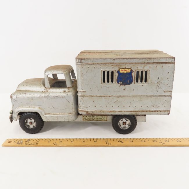 Buddy L GMC Brinks Bank Truck - Incomplete, no electronics. Lot Size 15x8x7" 4 LB All information and photos are intended to be as accurate as possible, but errors are possible. No item may be returned or refused based on this information, which is provided as a service to bidders. Please read terms & conditions and ask questions before bidding.