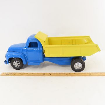 Yellow & Blue Painted Vintage Buddy L Dump Truck - Lot Size 21x8x8" 5 LB All information and photos are intended to be as accurate as possible, but errors are possible. No item may be returned or refused based on this information, which is provided as a service to bidders. Please read terms & conditions and ask questions before bidding.