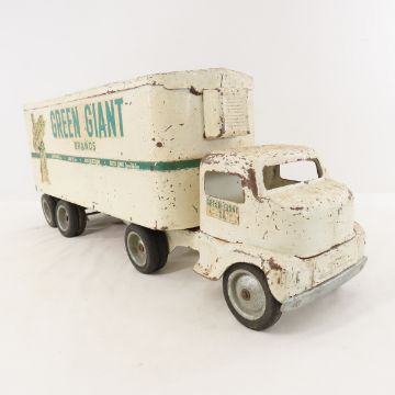 Tonka Green Giant Semi Truck & Trailer - wood bottom trailer with both doors. Lot Size 18x12x10" 6 LB All information and photos are intended to be as accurate as possible, but errors are possible. No item may be returned or refused based on this information, which is provided as a service to bidders. Please read terms & conditions and ask questions before bidding.