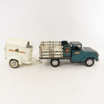Tonka Farms Cattle Stake Truck & Horse Trailer - one horse has broken leg. Lot Size 14x12x8" 5 LB All information and photos are intended to be as accurate as possible, but errors are possible. No item may be returned or refused based on this information, which is provided as a service to bidders. Please read terms & conditions and ask questions before bidding.