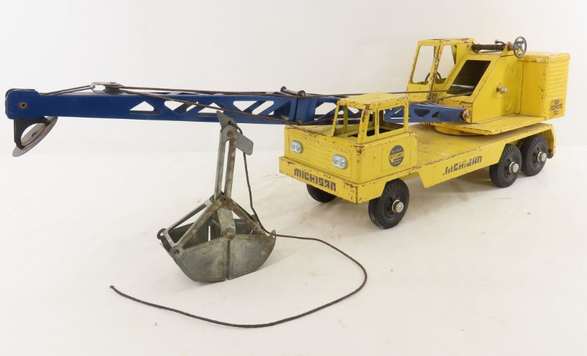 Nylint No 2200 A Michigan Shovel Model T-24 - has unattached clam. Lot Size 32x10x8" 10 LB All information and photos are intended to be as accurate as possible, but errors are possible. No item may be returned or refused based on this information, which is provided as a service to bidders. Please read terms & conditions and ask questions before bidding.