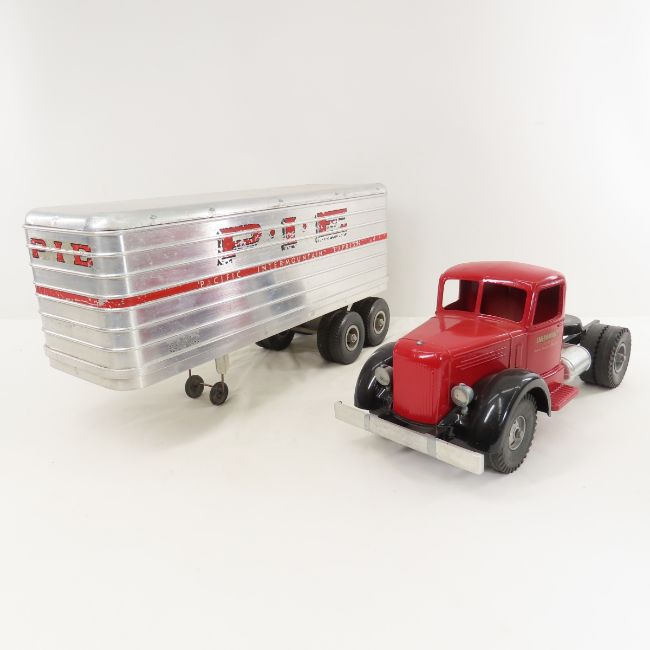 Smith Miller Mack Truck & PIE Trailer - Pacific Intermountain Express. Lot Size 20x14x8" 10 LB All information and photos are intended to be as accurate as possible, but errors are possible. No item may be returned or refused based on this information, which is provided as a service to bidders. Please read terms & conditions and ask questions before bidding.