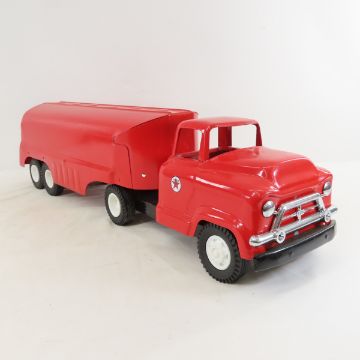 Buddy L Texaco Tanker Truck & Trailer - Repainted - Lot Size 17x12x8" 5 LB All information and photos are intended to be as accurate as possible, but errors are possible. No item may be returned or refused based on this information, which is provided as a service to bidders. Please read terms & conditions and ask questions before bidding.