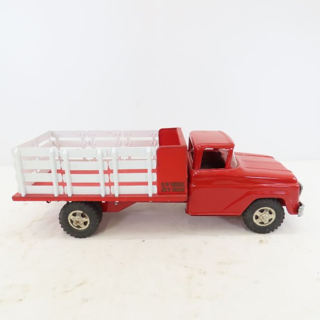 1950's Tonka Toys Stake Truck - Repro or repainted stakes. Lot Size 17x6x6" 5 LB All information and photos are intended to be as accurate as possible, but errors are possible. No item may be returned or refused based on this information, which is provided as a service to bidders. Please read terms & conditions and ask questions before bidding.
