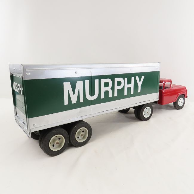Custom Nylint/MARX Ford truck and Murphy Trailer - repainted Nylint truck with MARX wheels, custom painted Murphy Trailer. Lot Size 16x12x10" All information and photos are intended to be as accurate as possible, but errors are possible. No item may be returned or refused based on this information, which is provided as a service to bidders. Please read terms & conditions and ask questions before bidding.