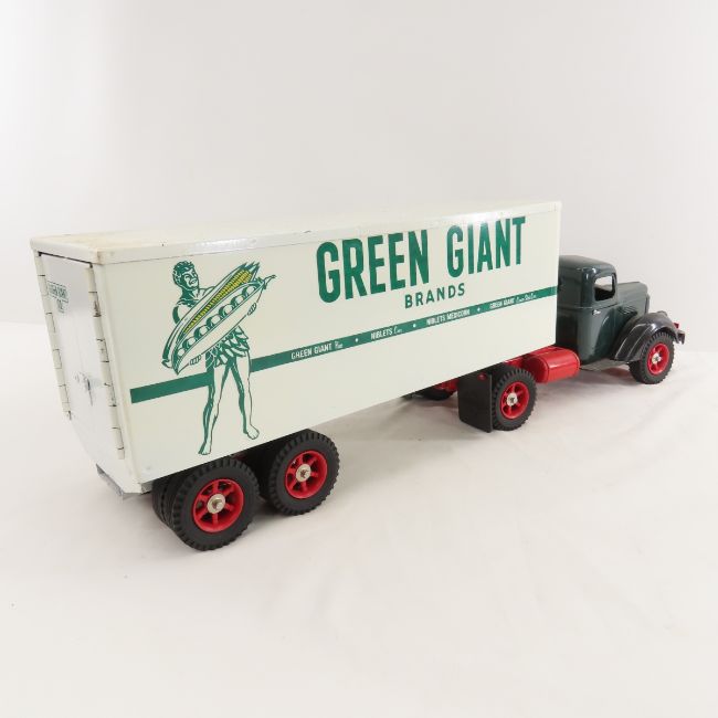 1995 Green Giant Custom Truck & Trailer - no maker marks, Truck stamped No. 3 IN SERIES 1 OF 250 1995. Lot Size 18x12x8" 12 LB All information and photos are intended to be as accurate as possible, but errors are possible. No item may be returned or refused based on this information, which is provided as a service to bidders. Please read terms & conditions and ask questions before bidding.