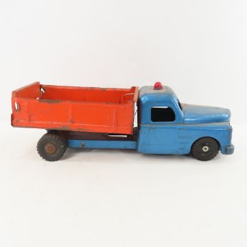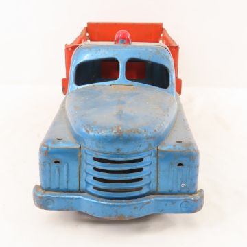 Structo Pressed Steel Dump Truck - Dump & tailgate work, Original Siren. Front axle not original. Missing Headlights. Lot Size 21x8x8" 4 LB All information and photos are intended to be as accurate as possible, but errors are possible. No item may be returned or refused based on this information, which is provided as a service to bidders. Please read terms & conditions and ask questions before bidding.