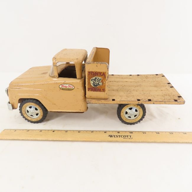 Tonka Toys Mound Minn Tonka Farms Stake Truck - incomplete, missing all stake sections. Lot Size 14x6x6" 2 LB All information and photos are intended to be as accurate as possible, but errors are possible. No item may be returned or refused based on this information, which is provided as a service to bidders. Please read terms & conditions and ask questions before bidding.