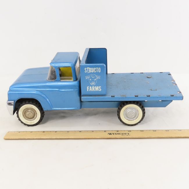 2 Structo Cattle Farms Flatbed Stake Trucks - 4 Stake sections total. Lot Size 16x14x6" 6 LB All information and photos are intended to be as accurate as possible, but errors are possible. No item may be returned or refused based on this information, which is provided as a service to bidders. Please read terms & conditions and ask questions before bidding.