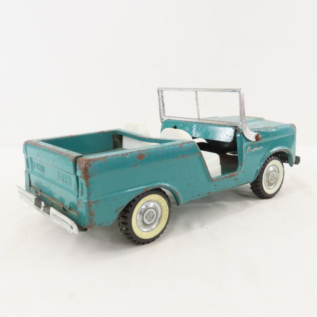 2 1960s Nylint Ford Bronco's - 1 missing steering wheel. Lot Size 11x11x4" 3 LB All information and photos are intended to be as accurate as possible, but errors are possible. No item may be returned or refused based on this information, which is provided as a service to bidders. Please read terms & conditions and ask questions before bidding.