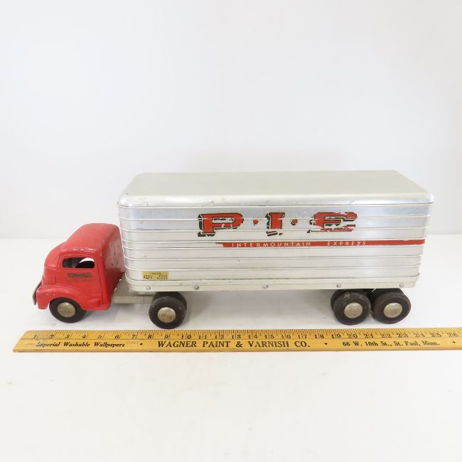 1950s Smith Miller GMC Truck & PIE Trailer - Pacific Intermountain Express. Lot Size 20x14x8" 10LB All information and photos are intended to be as accurate as possible, but errors are possible. No item may be returned or refused based on this information, which is provided as a service to bidders. Please read terms & conditions and ask questions before bidding.