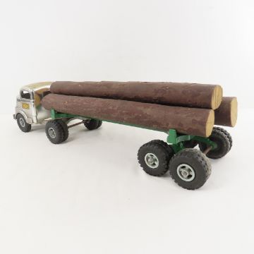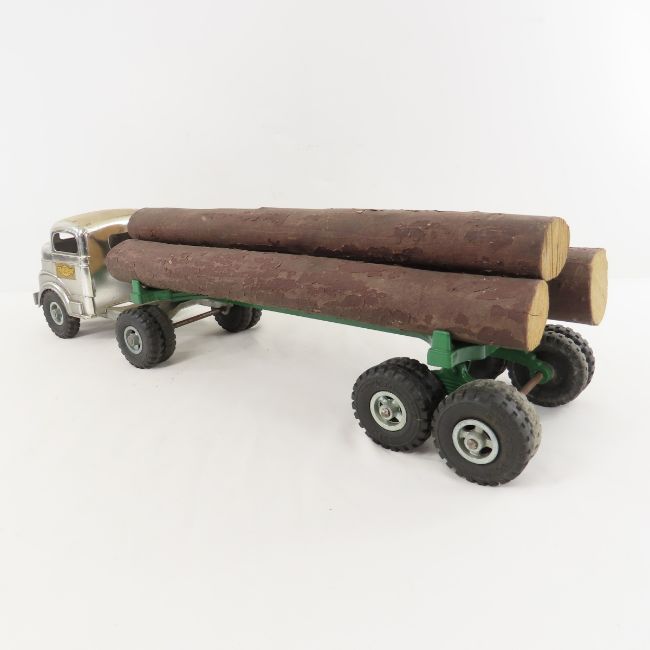 Structo Toys Log Truck & Trailer - Logs are not original. Lot Size 16x10x6" 4 LB All information and photos are intended to be as accurate as possible, but errors are possible. No item may be returned or refused based on this information, which is provided as a service to bidders. Please read terms & conditions and ask questions before bidding.