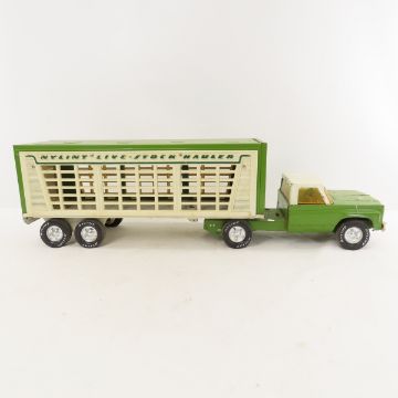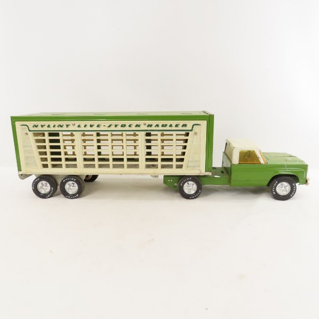 Nylint Live-Stock Hauler Semi Truck & Trailer - Back door has been colored mostly black and is missing a small chunk. Operates fine. Lot Size 20x14x9" 5 LB All information and photos are intended to be as accurate as possible, but errors are possible. No item may be returned or refused based on this information, which is provided as a service to bidders. Please read terms & conditions and ask questions before bidding.