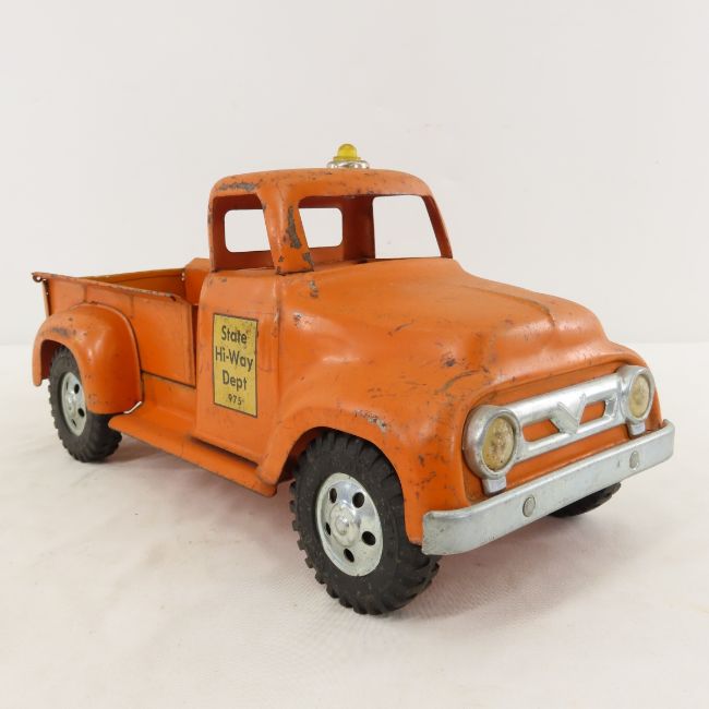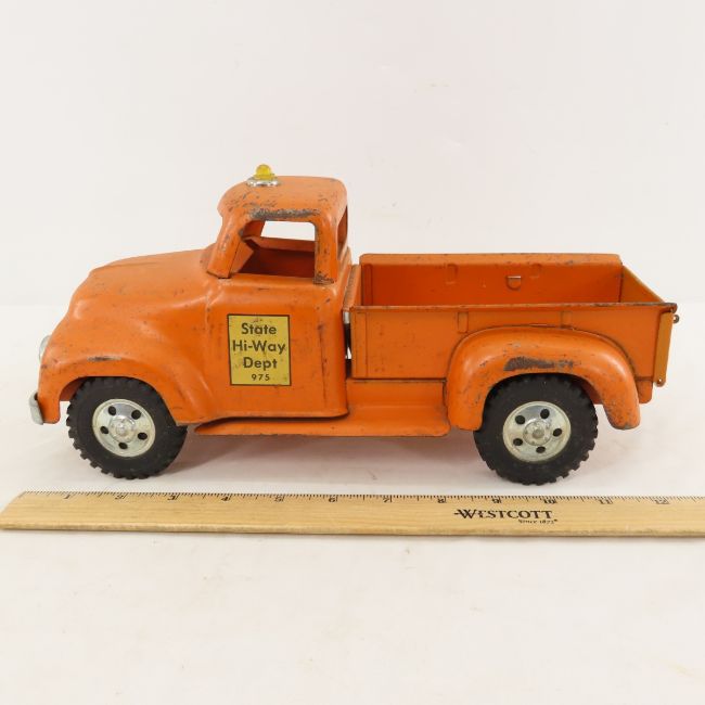 1956 Tonka State Hi-Way Dept 975 Pickup Truck - Lot Size 14x8x8" 2 LB All information and photos are intended to be as accurate as possible, but errors are possible. No item may be returned or refused based on this information, which is provided as a service to bidders. Please read terms & conditions and ask questions before bidding.