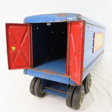 MARX Hi-Way Express Van Lines Semi Truck & Trailer - Plastic cab in good shape, Both Trailer Doors. Lot Size 20x14x10" 12 LB All information and photos are intended to be as accurate as possible, but errors are possible. No item may be returned or refused based on this information, which is provided as a service to bidders. Please read terms & conditions and ask questions before bidding.