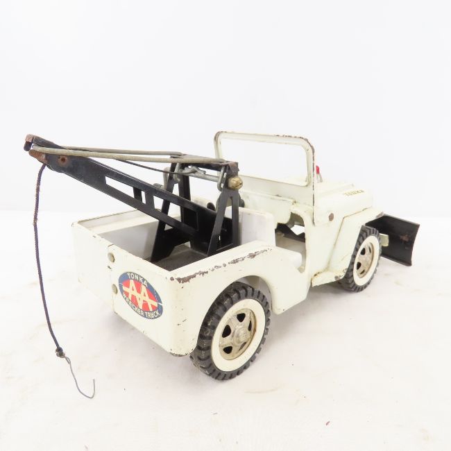 1963 Pressed Steel Tonka #435 Jeep Wrecker & Plow - Lot Size 14x6x6" 2 LB All information and photos are intended to be as accurate as possible, but errors are possible. No item may be returned or refused based on this information, which is provided as a service to bidders. Please read terms & conditions and ask questions before bidding.