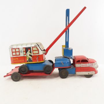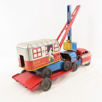 Wyandotte Sturdy Construction Co 3 Piece set - Truck, Flatbed Trailer with ramp, Lima crane with bucket. Lot Size 22x12x10" 5 LB All information and photos are intended to be as accurate as possible, but errors are possible. No item may be returned or refused based on this information, which is provided as a service to bidders. Please read terms & conditions and ask questions before bidding.