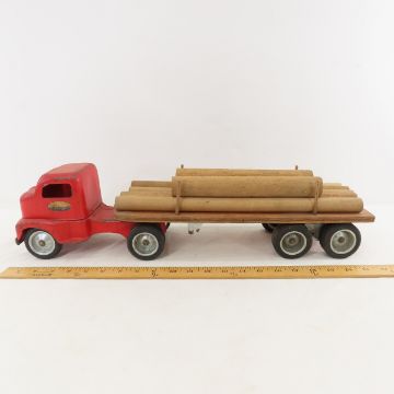 Tonka Toys Log Truck with Wood Bed Trailer - Lot Size 18x12x8" 6 LB All information and photos are intended to be as accurate as possible, but errors are possible. No item may be returned or refused based on this information, which is provided as a service to bidders. Please read terms & conditions and ask questions before bidding.