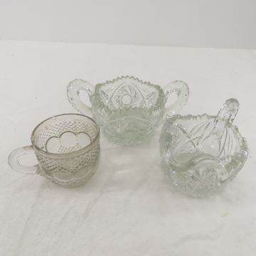 Vintage Glassware creamers & sugars, vase, etc Please read terms & conditions and ask questions before bidding.