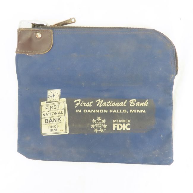 Cannon Falls MN Bank Bag, Bankers Life Sign & More Banker's Life metal sign is 18x12.5", 1st National Bank of Cannon Falls bag, and Middleton's Tobacco Tin. From storage of the Belle Creek Roller Rink, MN. Please read terms & conditions and ask questions before bidding.