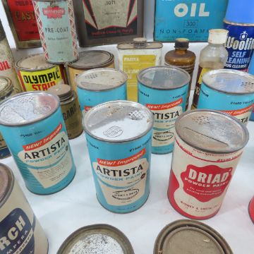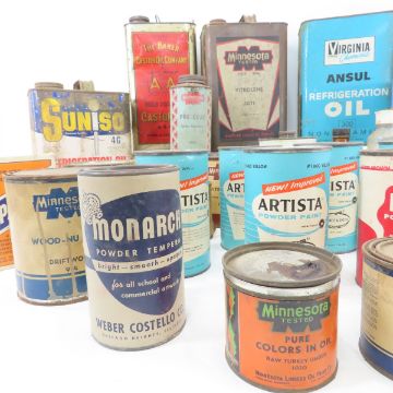 Vintage Powder Paint, Stain & Cleaning Tins NO SHIPPING- many are partial or full. Some are very dirty- From storage of the Belle Creek Roller Rink, MN. Please read terms & conditions and ask questions before bidding.