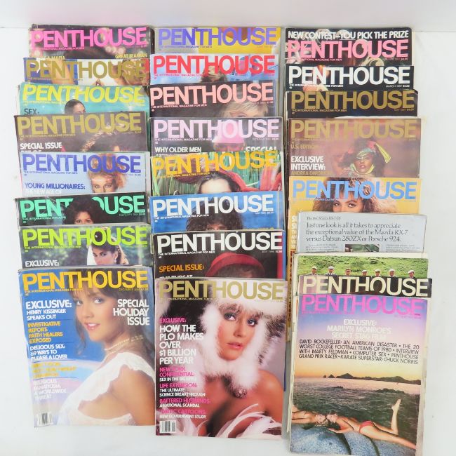 1980-1986 Penthouse including 1984 Miss America in rough to good condition, most have centerfolds, some with loose or missing covers & or pages Please read terms & conditions and ask questions before bidding.