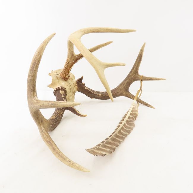 Antlers and mounts with feather Please read terms & conditions and ask questions before bidding.