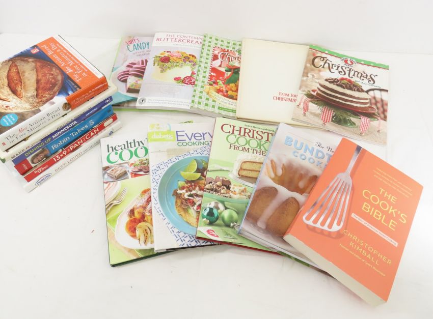 The Cooks Bible, Artisan Bread & Other Cookbooks Diabetic Living, Bundt Pan, gooseberry Patch, and others Please read terms & conditions and ask questions before bidding.
