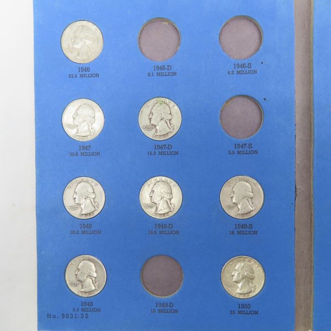 56 Washington Quarters in 2 partial books 1934-59 Please read terms & conditions and ask questions before bidding.
