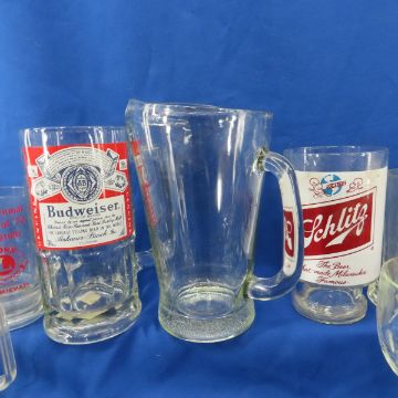 Budweiser, Schlitz & Other Glass Bar ware Glass needs cleaning. Please read terms & conditions and ask questions before bidding.