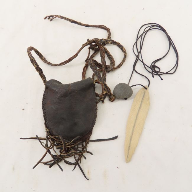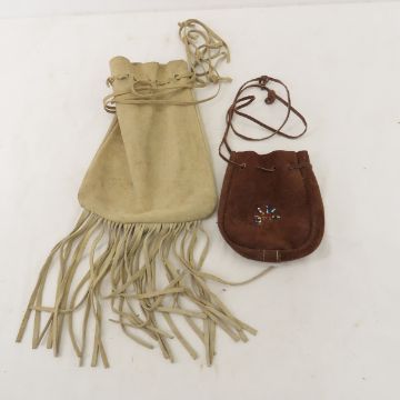 Hand made leather & buckskin pouches Please read terms & conditions and ask questions before bidding.
