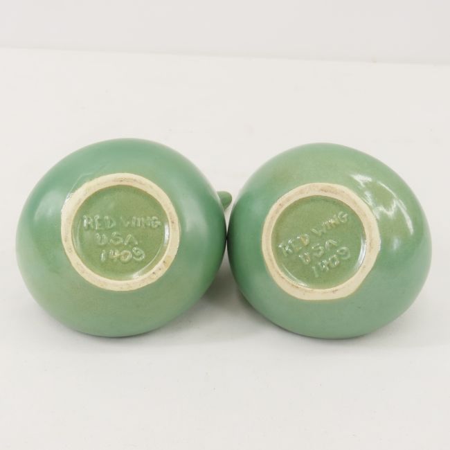 5 Pieces Green Red Wing Art Pottery 5019, 16225, 1409 (pair), 278 Please read terms & conditions and ask questions before bidding.