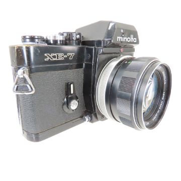 Minolta XE-7 35mm Film Camera with lenses 58mm f/1.4, 35mm f/2.8 & new in box 135mm f/3.5 Please read terms & conditions and ask questions before bidding.