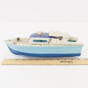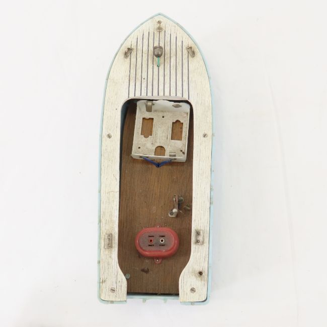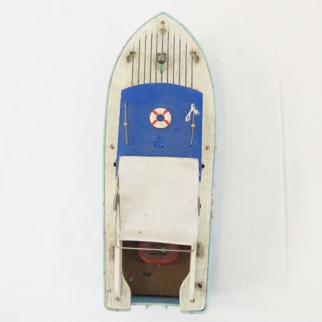Vintage Wood & Plastic Boat Model with Engine 11"- untested Please read terms & conditions and ask questions before bidding.