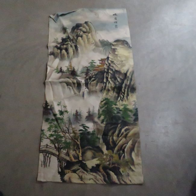 Asian Tapestry, Framed Print & Ceramic Lamp 32" lamp with shade- works, tapestry is 34x17", framed silk screen fabric 9x11", all need cleaning Please read terms & conditions and ask questions before bidding.