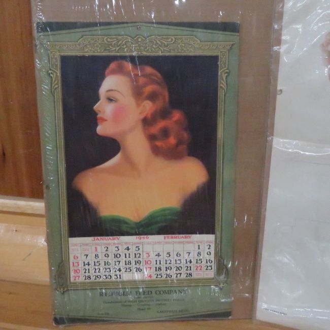 1946 Devorss Calendar & 3 Other Pin-Up Prints Rydholm Fee Company Lakefield, MINN, calendar is complete- measures 9x16", Vargas "Torch Singer" magazine pull out 11x7", Barclay Grubb 1938 "Pretty Polly" parrot pin-up 15x20.5", Elvgren girl with dog 8x10" inframe. Please read terms & conditions and ask questions before bidding.