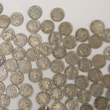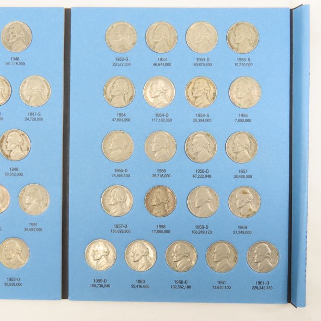 Lincoln Cents, Buffalo & Jefferson Nickels w/books plus jar of Buffalo Nickels Please read terms & conditions and ask questions before bidding.