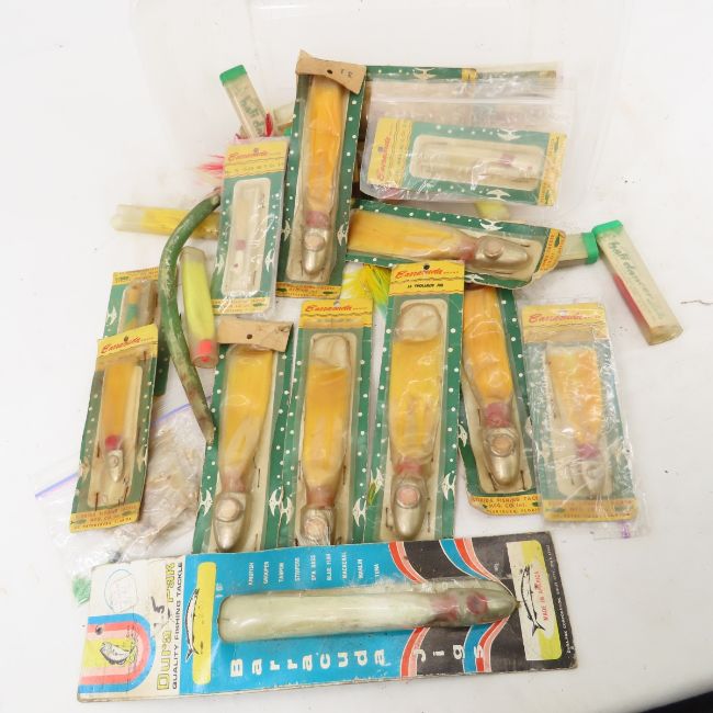 3 Vintage tackle boxes with lures and gearfull of tackle & misc carded jigs Please ask questions & read terms & conditions before bidding.