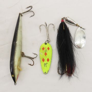 Group of modern fishing lures and gear some newRegal fly tying kit, other salmon fishing items Please ask questions & read terms & conditions before bidding.