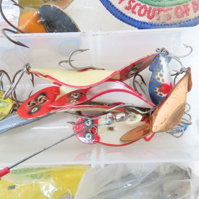 Fishing lures, spoons, flies, reels, rods, tackle boxes,decoys, and other gear. Boat motors, oars, archery bows, traps, decoys, waterfowl & other calls, antlers, long guns, handguns, air rifles, ammo, WWII German, Japanese & other military, swords, knives, flags, uniforms, helmets and more.