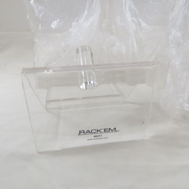 12 Rack 'EM Brand Acrylic Pistol StandsStock number 6311, with front tag section. Please ask questions & read terms & conditions before bidding.