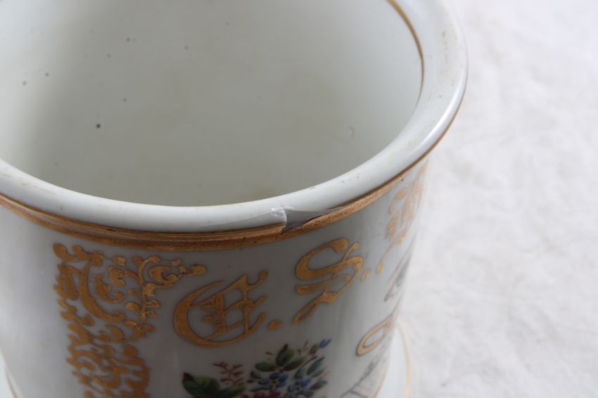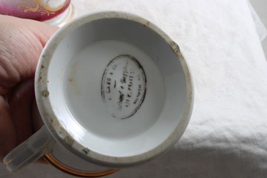 2 Antique Barber Shop Shaving MugsEach mug has the name of the Barber or Barber's Client on it. Each mug has small damage either small chip or small crack as pictured. Still nice addition to a collection of these antique shaving mugs used Please ask questins and read terms & conditions before bidding.