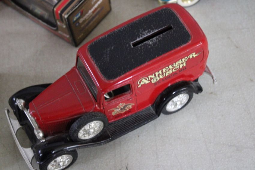 Nascar & Other Diecast Cars & BanksSizes vary 1:64, 1:87, 1:32 Scales. Dale Earnhardt, Dale Earnhardt, Jr., Anheuser Busch Diecast Bank w/key, 1993 Chevrolet Station Wagon 2nd Anniversary diecast bank (no key). See all photos for what is Please ask questins and read terms & conditions before bidding.