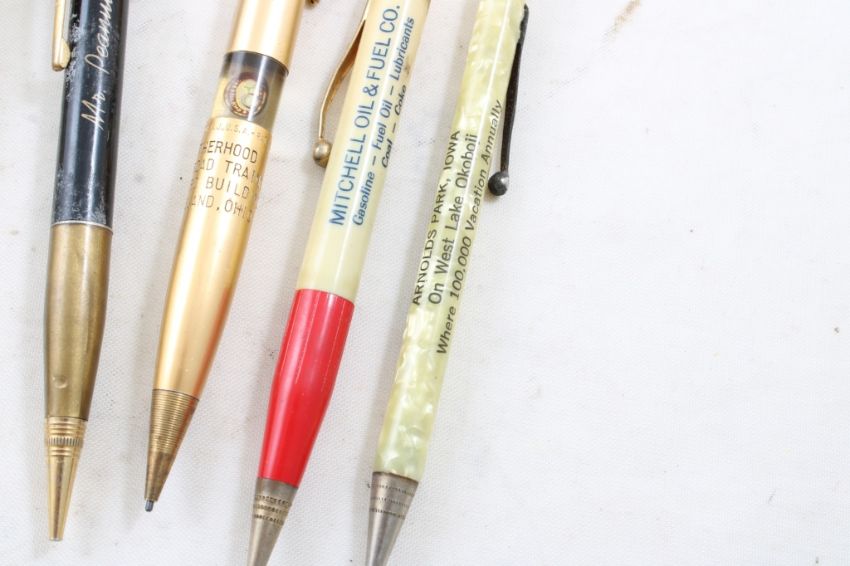 Advertising Mechanical Pencils Mr. Peanut, MoreStandard Engineering Fort Dodge, Ia., Ransford Hotel Brainerf, Minn., "Philadelphia 1935", Luverne Minn. Block Co. PH: 305, Hansen's Healthy Milk, Shebeck Bros. Garage, Brotherhood of Railroad Trainmen Union,N.J., Please ask questins and read terms & conditions before bidding.