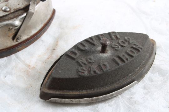3 Antique Miniature Sad IronsOne Pat. Date May 22, 1900 w/Trivet, One Marked The Pearl, and one unmarked all as pictured. Please ask questins and read terms & conditions before bidding.